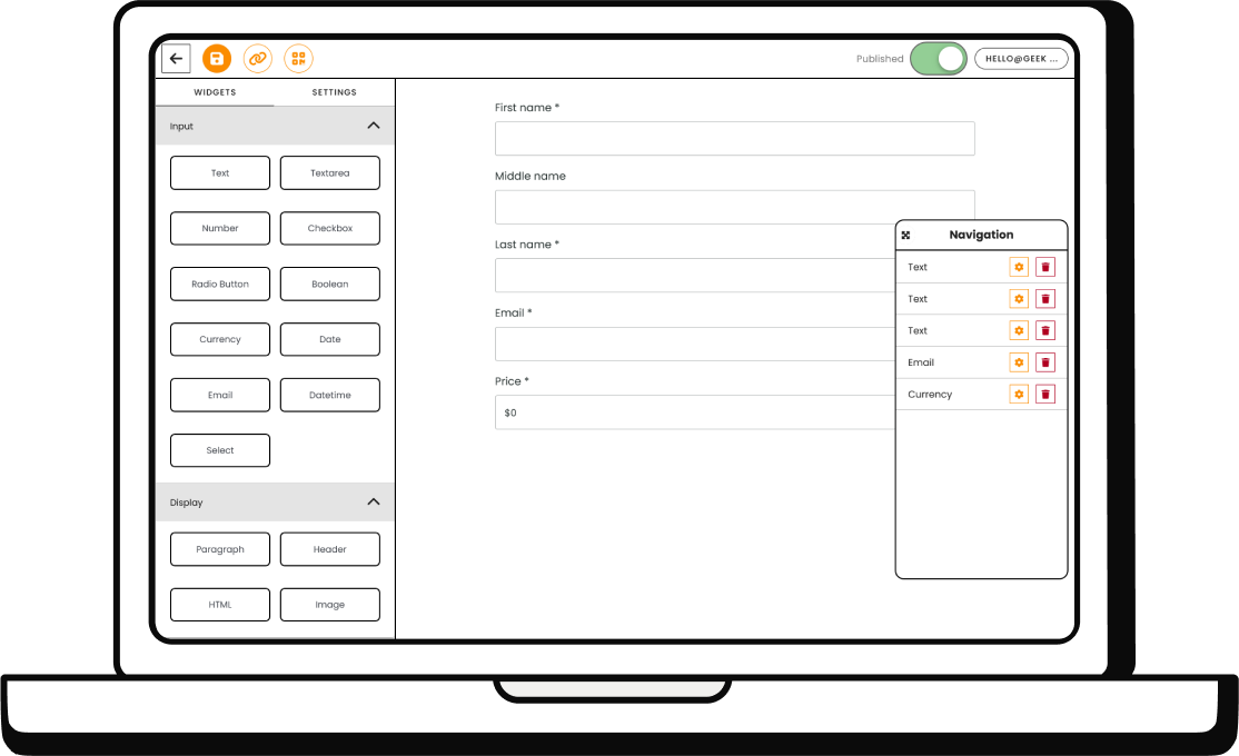 Geeky Forms is a Free to use modem drag and drop Form Builder that prioritises security, ease of use, customizability, and aesthetics.
